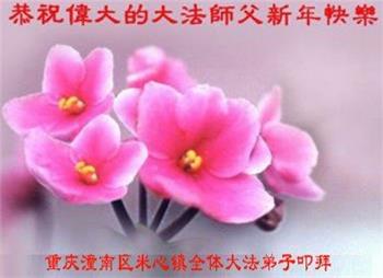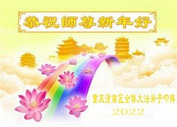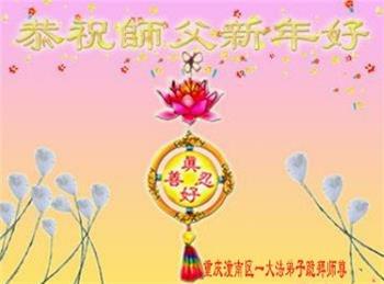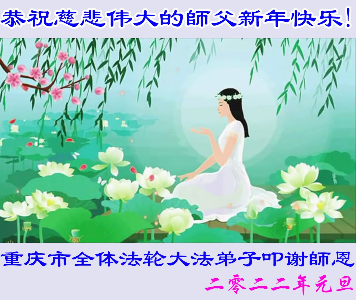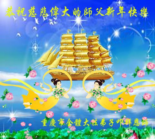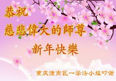 重庆市全体大法弟子恭祝慈悲伟大的师父新年快乐! 目前师父正法将進入法正人间的时刻,我们都感到修炼的紧迫,特别是救人的紧迫,我们必须尽全力做好,兑现史前立下的誓约。 重庆市全体大法弟子恭祝慈悲伟大的师父新年快乐!