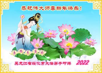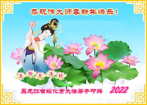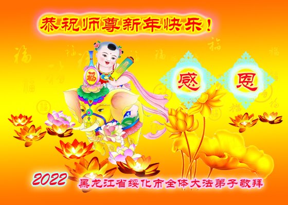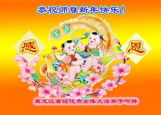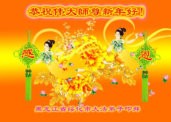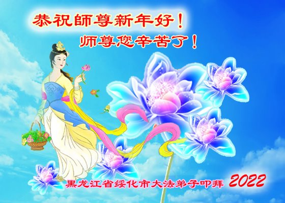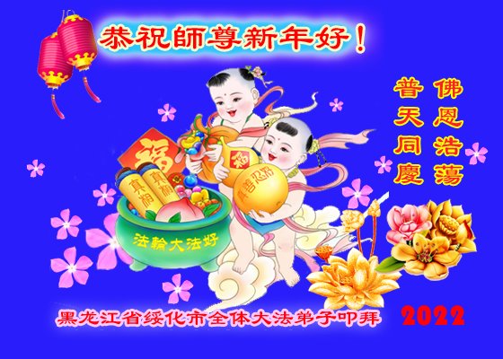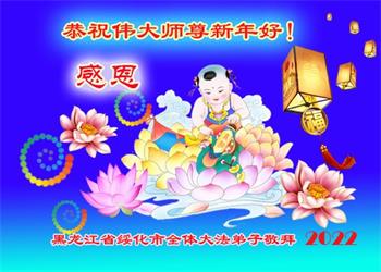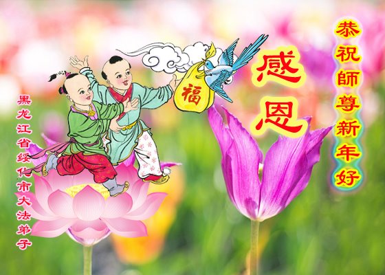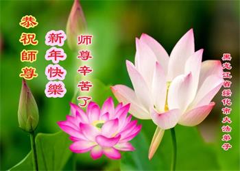 弟子跟随师尊修炼已二十多年了,在师尊的慈悲保护下走到今天,师尊为弟子承受了太多,弟子无以回报,唯有听师尊的话,多学法,同化法,与同修配合好,做好师尊交给的三件事,紧跟师尊的正法進程,圆满随师还。 黑龙江省绥化市北林区母女大法弟子恭祝师父新年快乐!
