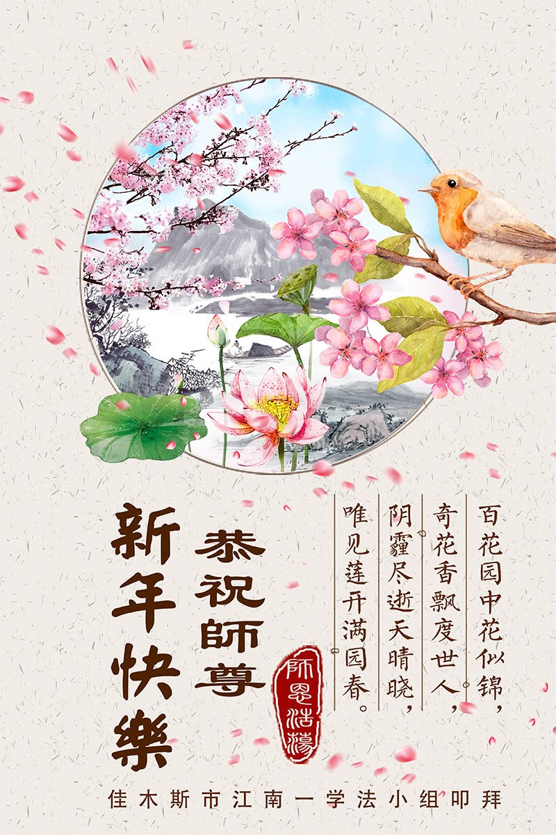 黑龙江省佳木斯一学法小组全体大法弟子恭祝慈悲伟大的师尊新年快乐!
