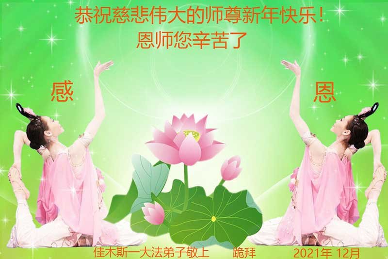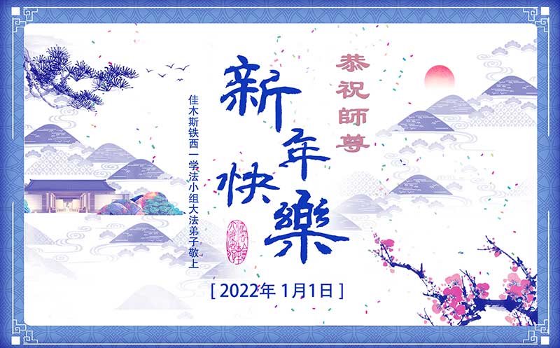 【明慧网二零二一年十二月三十一日】 黑龙江省佳木斯地区大法弟子郑氏家族恭祝慈悲伟大的师尊新年快乐!