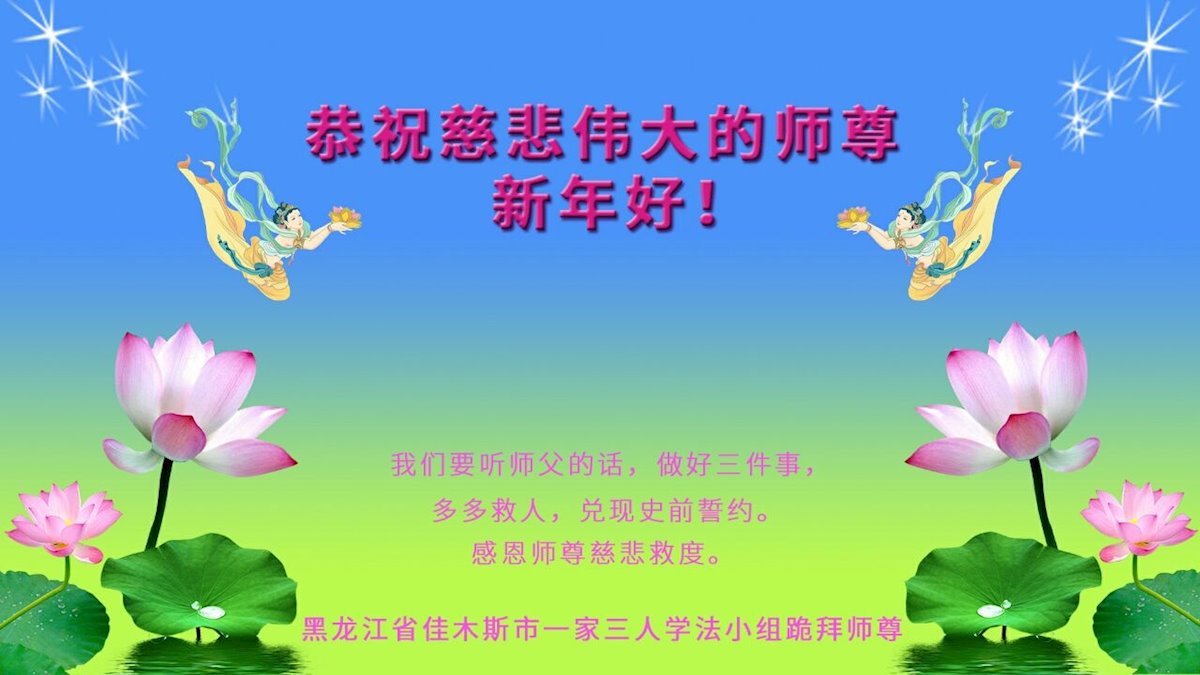 黑龙江省佳木斯市一全家大法弟子恭祝师父新年快乐!