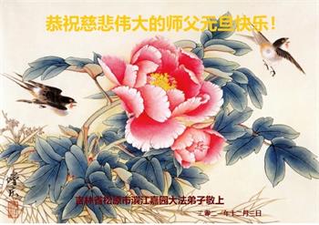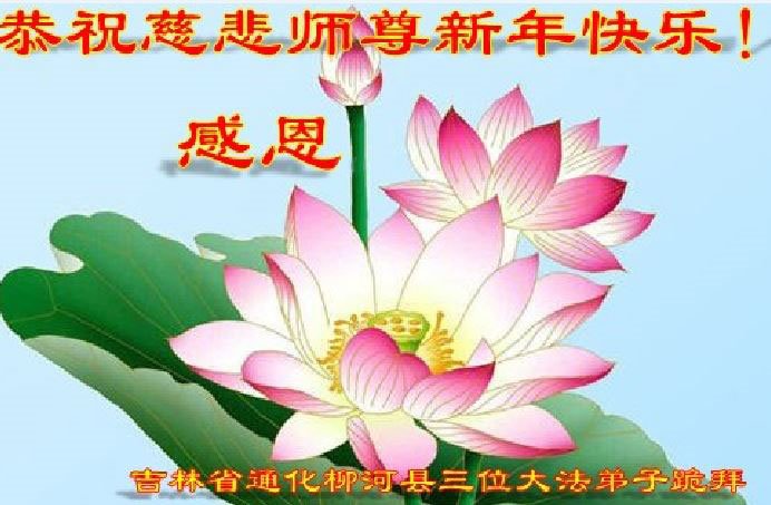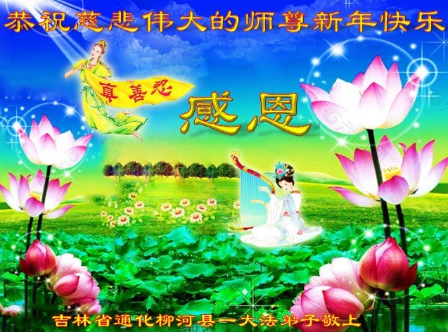 恭祝师尊新年快乐! 感恩师尊的加持和保护,保护弟子在迫害的环境中坚定的走了过来。无限感恩师尊!弟子定当努力实修,跟上正法進程,随师还。感恩师尊!感恩大法!法轮大法好!真、善、忍好!叩拜师恩!合十 吉林省通化柳河县一大法弟子及全家恭祝慈悲伟大的师尊新年快乐!