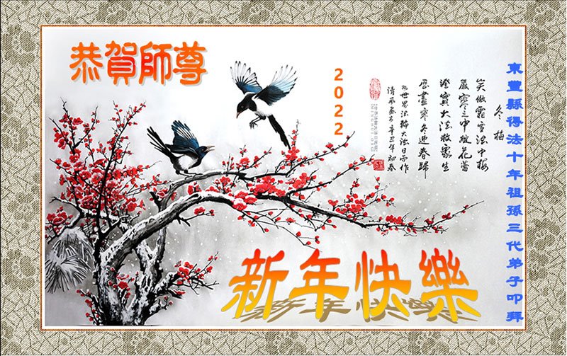 敬贺师尊 飞得异地念雪乡 天地广大心神旷 穹宇浩渺师尊造 一念乾坤万物长 恩赐天胆助师行 磕磕绊绊渐坦荡 常思自省同化法 抓紧救人不可忘 又是一年新伊始 遥祝师尊洪愿偿 吉林省辽源市东丰县得法十年祖孙三代大法弟子恭祝师尊新年快乐!