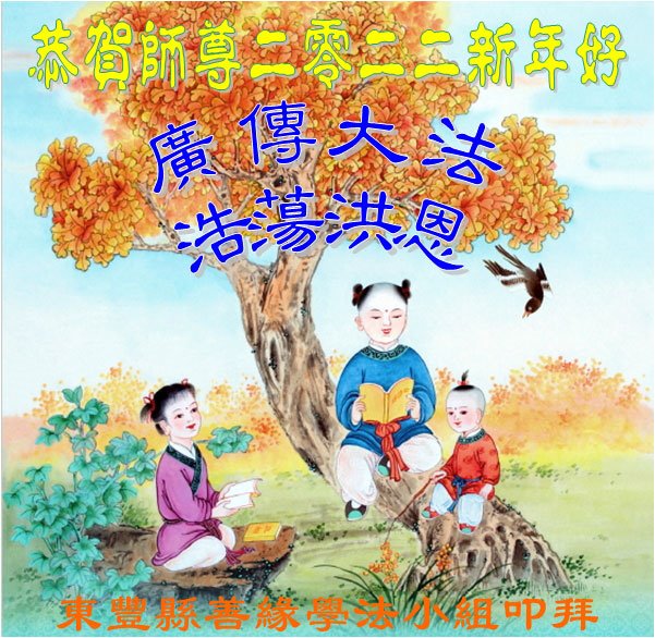 全家得法有善缘 同修大法结法缘 共同精進三件事 助师正法了大愿 吉林省辽源市东丰县一老大法弟子恭祝师尊新年快乐!
