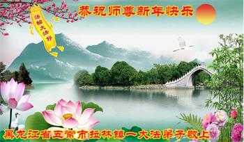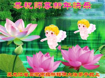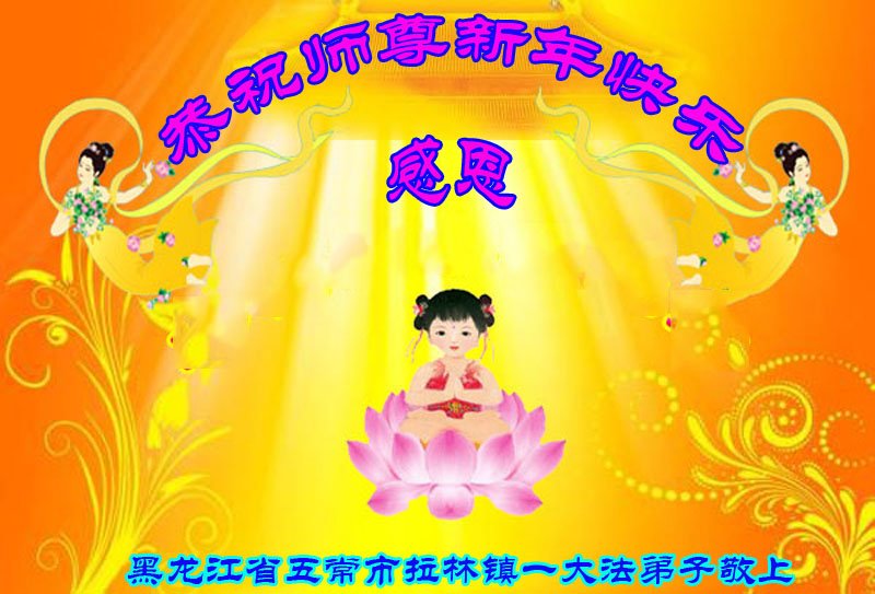 恭祝慈悲伟大的师尊新年快乐!师尊辛苦了! 黑龙江省哈尔滨市五常市拉林镇俩大法弟子敬上! 黑龙江省哈尔滨市五常市拉林镇一大法弟子与家人恭祝师尊新年快乐!