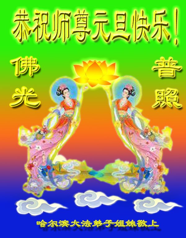 恭祝师尊元旦快乐! 黑龙江省哈尔滨市大法弟子姐妹敬上 黑龙江省哈尔滨大法弟子恭祝慈悲伟大的师父新年快乐!