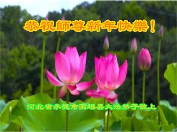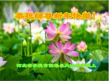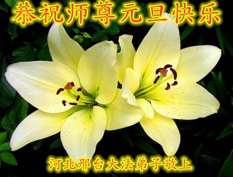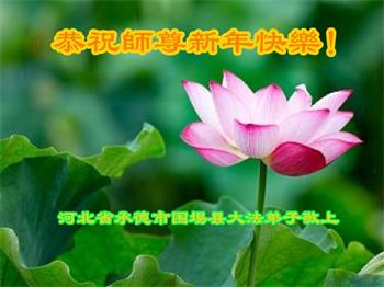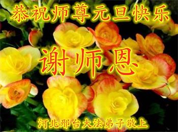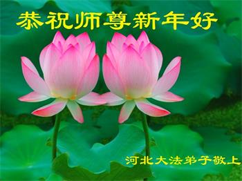 恭祝慈悲伟大的师尊新年快乐! 河北省衡水市一学法小组三名大法弟子敬上 河北邯郸丛台区多人大法弟子恭祝师尊元旦快乐!