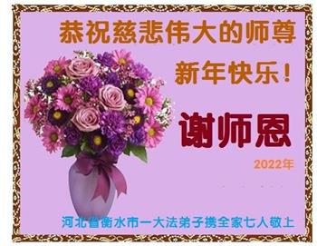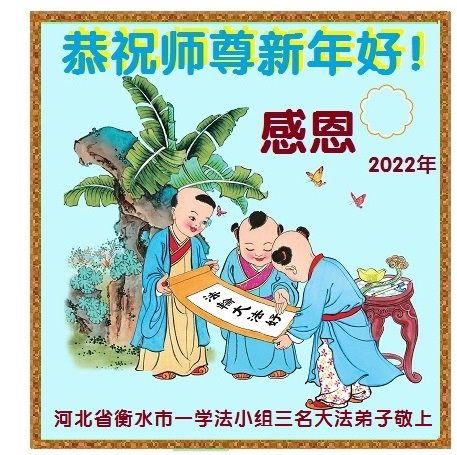 恭祝师尊新年快乐! 2021年12月12日! 河北省衡水市一大法弟子携全家恭祝师尊新年快乐!