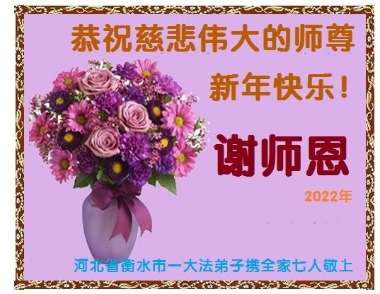 恭祝慈悲伟大的师尊新年快乐! 河北省衡水市一大法弟子携全家七人敬上 河北省衡水市一学法小组六名大法弟子恭祝慈悲伟大的师尊新年快乐!