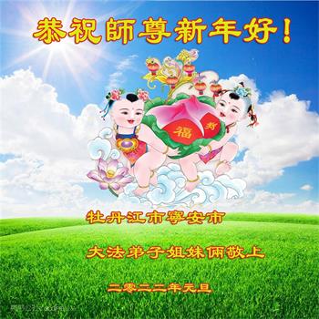 师父新年快乐!师父辛苦了!在有限的时间里,修好自己,做好三件事,让师父多一些欣慰,少一份操心,共同精進,比学比修。谢谢师父保护! 黑龙江省牡丹江市宁安市大法弟子姐妹俩恭祝慈悲伟大的师父新年快乐!
