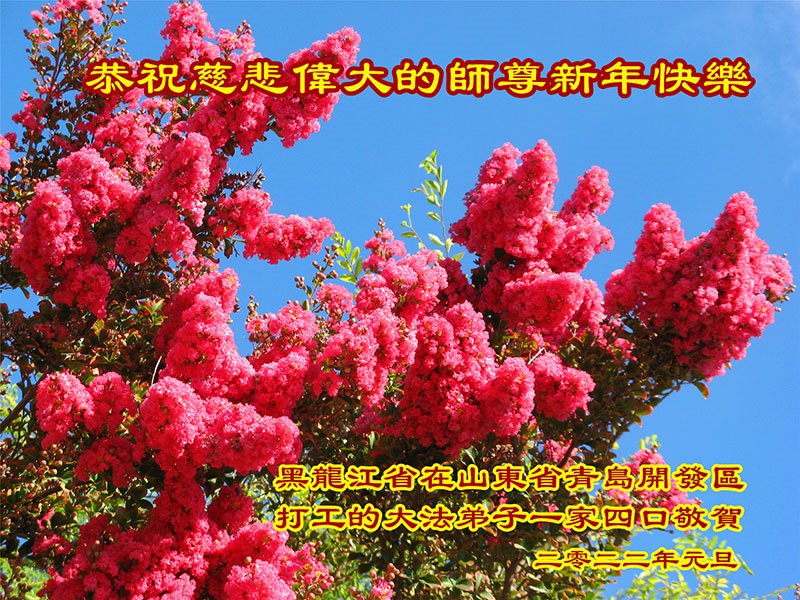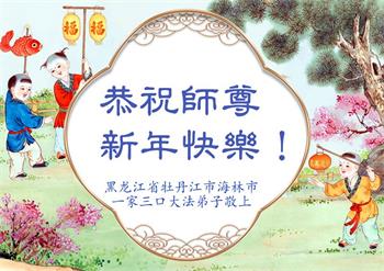 黑龙江省在山东省青岛开发区打工的大法弟子一家四口恭祝慈悲伟大的师尊新年快乐!