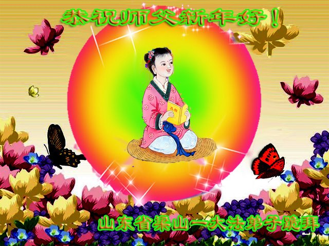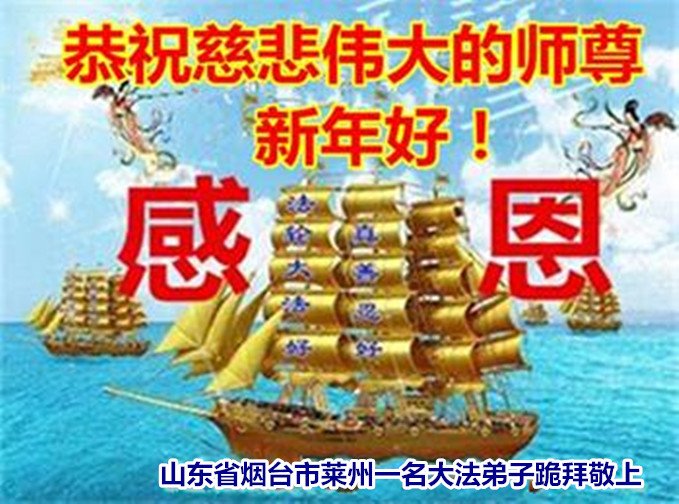 山东省烟台市莱州一名大法弟子恭祝慈悲伟大的师尊新年快乐! 山东省烟台市莱州一学法小组大法弟子恭祝慈悲伟大的师尊新年快乐!