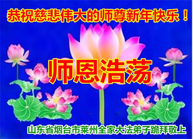 山东省烟台市莱州一家大法弟子恭祝慈悲伟大的师尊新年快乐! 山东省烟台市莱州一名大法弟子恭祝慈悲伟大的师尊新年快乐!