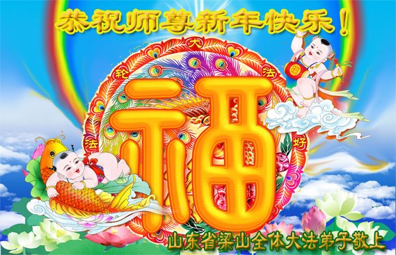 山东省梁山县全体大法弟子恭祝慈悲伟大的师尊新年快乐!