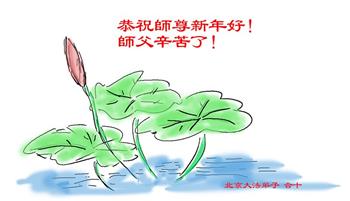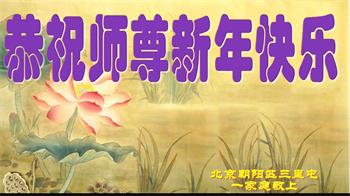 恭祝师尊新年快乐! 我们全家一直在师恩的慈悲护佑中,渡过了艰难的日子。在师尊的佛恩浩荡中,走向未来,走向光明!我们全家要继续见证大法的慈悲救度!无比感恩师尊! 北京市朝阳区一学法小组大法弟子恭祝师尊新年快乐!