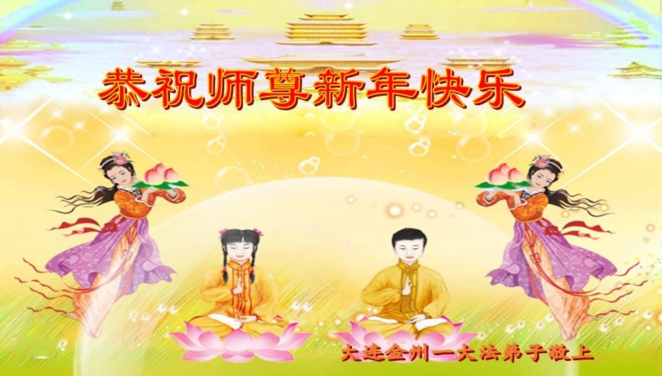 恭祝师尊新年快乐! 辽宁省大连市大法弟子敬上 辽宁省大连一老年弟子恭祝慈悲伟大的师尊新年好!