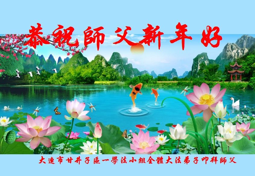恭祝师尊新年快乐! 辽宁省大连地区五个学法小组大法弟子敬上 辽宁省大连市旅顺口区全体大法弟子恭祝师尊新年快乐!