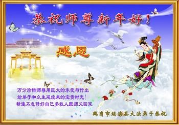 谢谢师尊保护弟子。请师尊放心,弟子明年更加努力,好好学法炼功,多多救人,做好三件事,跟师尊回家。 黑龙江省双鸭山市集贤县全体大法弟子恭祝师尊新年好!