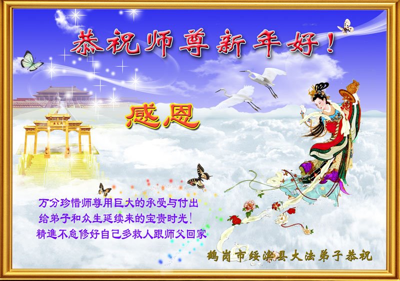 感恩慈悲伟大的师尊救度,弟子无以言表,在此新年来临之际,弟子们敬上无限的感恩! 黑龙江鹤岗一中年大法弟子恭祝师尊新年好!