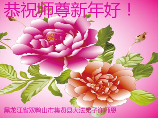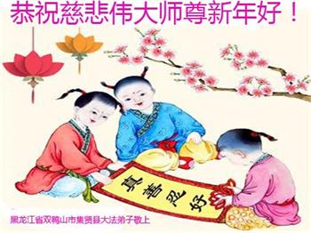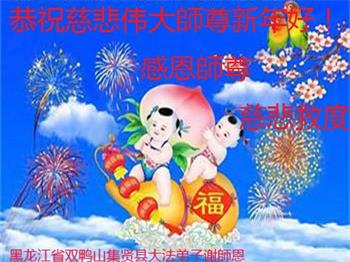 恭祝师尊新年快乐!感恩师尊慈悲救度,弟子今后要坚持不懈做好三件事,让师尊少操心,叩谢师尊。 黑龙江省双鸭山市集贤县一老年大法弟子恭祝师尊新年好!