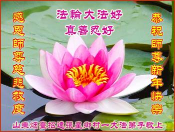 山东烟台招远张星镇大法弟子恭祝慈悲伟大的师尊新年快乐!