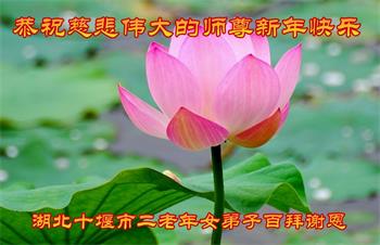 听师尊的话,修好自己,救度世人,精進不停。 湖北十堰市二老年大法女弟子恭祝慈悲伟大的师父新年好!