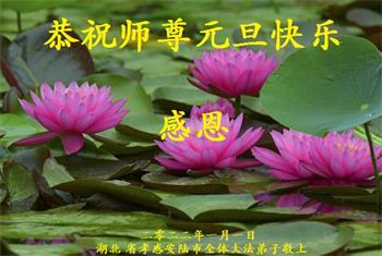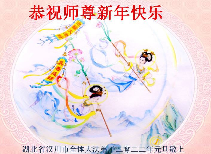 武汉市汉阳区大法弟子一定跟随师尊走好正法救世人之路。谢谢师尊的慈悲苦度! 湖北省孝感市汉川市全体大法弟子恭祝师尊新年快乐!