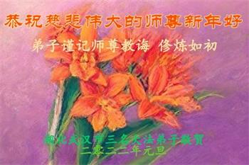 在这二十多年的修炼中走到今天,离不开师父的慈悲保护和及时点悟。在新的一年里,弟子一定修去名利情等一切执着,静心学法、炼功、发正念,精進实修,做好三件事,随师返家园。 湖北省荆州市荆沙城区法轮功学员恭祝师尊新年好!