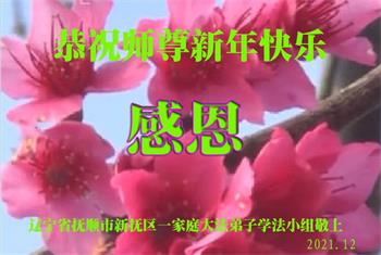 辽宁鞍山一夫妻大法弟子敬上 二零二一年十二月二七日 辽宁省抚顺市一家三位大法弟子恭祝师尊新年快乐!