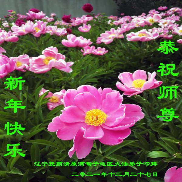 在这新年来临之际,祝慈悲伟大的师父新年快乐!在新的一年里,弟子做好师父交给的三件事,跟师父回家。 辽宁海城老年夫妇大法弟子敬上 辽宁鞍山一大法弟子恭祝慈悲伟大的师父新年快乐!