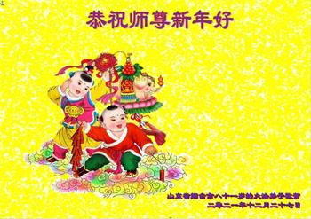 师尊您好!师尊您辛苦了!谢谢师尊的苦度! 山东省烟台市八十一岁的大法弟子恭祝师尊新年好!