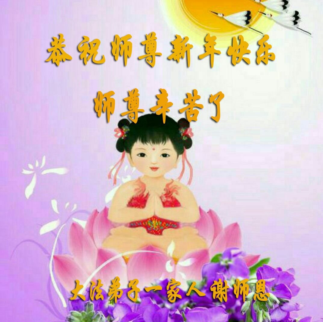 恭祝师尊新年好!新年快乐!您辛苦了!感恩您的慈悲保护,很多次经历都是有惊无险。现有的时间都是师父延长的,大家才能有机会做的更好。期待有机会能见到您!再次祝师尊新年快乐! 黑龙江省佳木斯大法弟子家属叩拜师尊! 黑龙江省佳木斯市汤原农场母子大法弟子恭祝师尊新年快乐!