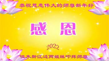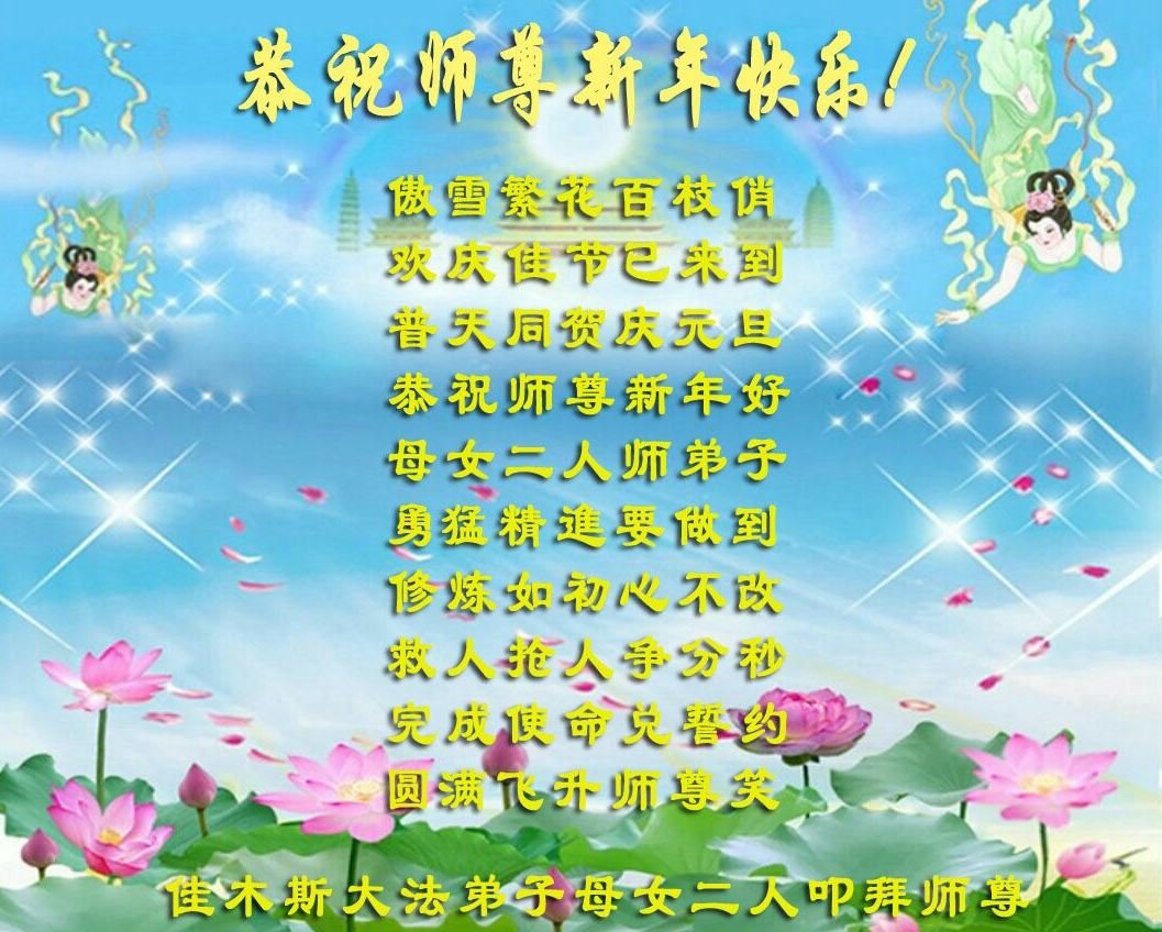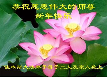 黑龙江省佳木斯市大法弟子母子二人及家人恭祝师尊新年快乐!
