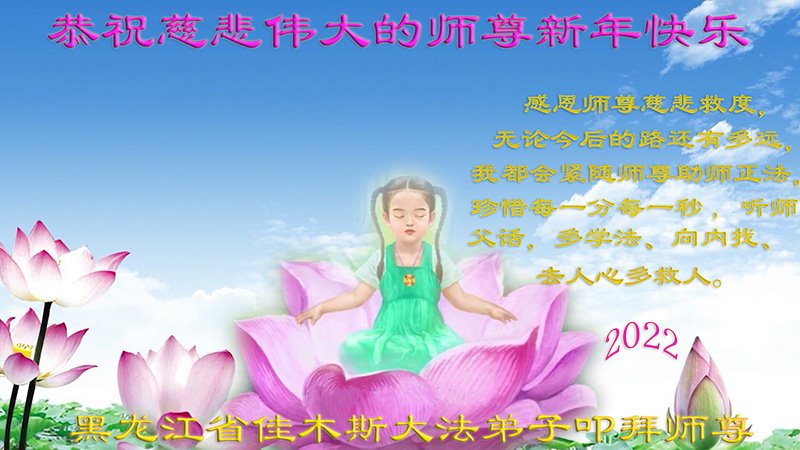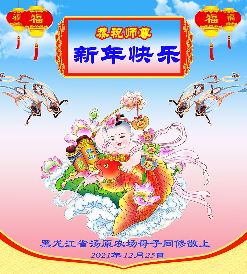 恭祝师尊您新年好! 这二十多年都是慈悲伟大的师父一路慈悲保护着弟子,弟子们才能一路平平稳稳的做着三件事走到今天。千言万语也无法表达弟子对师尊您的感恩。弟子们今后会更加努力做好三件事,多救人,正念正行,走好师尊您给安排的路。否定旧势力的一切安排,兑现好最神圣的誓约。 恭迎师尊您回国。跟随师尊您圆满回家。 恭祝师尊您新年快乐! 黑龙江省佳木斯市二位大法弟子敬上 2021年12月30日 黑龙江省佳木斯市桦川县一大法弟子恭祝师尊新年快乐!