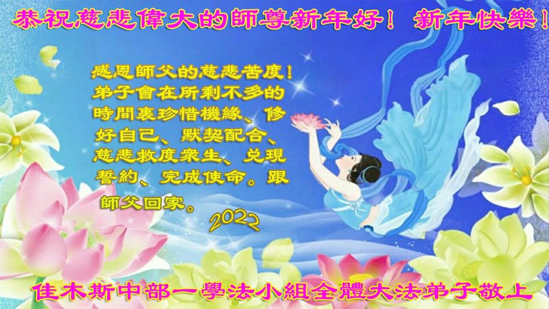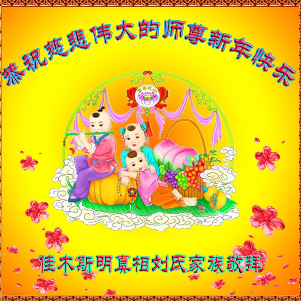 恭祝慈悲伟大的师尊新年快乐!法轮大法好!真善忍好!谢谢大法师父救度之恩! 佳木斯明真相刘氏家族敬拜! 黑龙江省佳木斯中部一学法小组大法弟子恭祝师尊新年好!