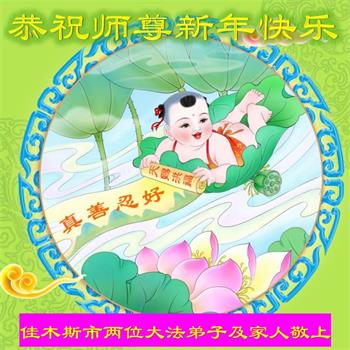 黑龙江省佳木斯市两位大法弟子及家人恭祝师尊新年快乐!