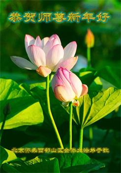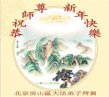 慈悲伟大的师尊:您好!我们是海淀区、西城区、朝阳区等多个学法小组的成员,修炼以来备受慈悲伟大的师尊的保护和救度,感恩师尊!我们摔摔打打的走到现在,跟随师尊的脚步没有停,对大法坚信,对自己承担的责任没有忘。我们要更好的学好法,修好自己,完成史前的誓约,不辜负师尊的慈悲苦度!值此新年之际,衷心的送上我们的诚挚的祝愿:恭祝师尊新年快乐!叩谢师尊洪恩救度! 北京市多个学法小组大法弟子敬上 北京山区的大法弟子恭祝慈悲伟大的师尊新年快乐!