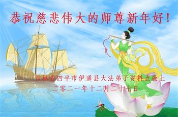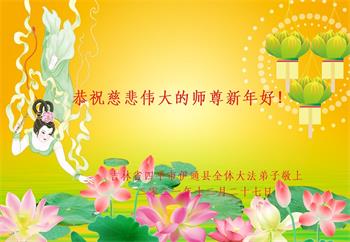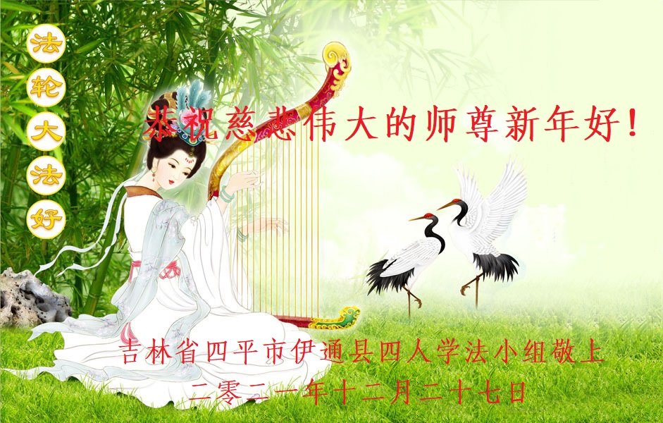 吉林省四平市伊通县四人学法小组大法弟子恭祝慈悲伟大的师尊新年好!
