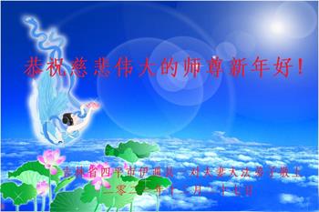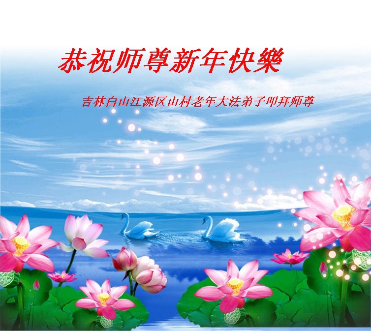 感恩师尊慈悲救度!师尊您辛苦了!跪拜师尊!合十! 吉林省大安市一学法小组全体大法弟子敬上 吉林省白山市江源区山村老年大法弟子恭祝师尊新年快乐!