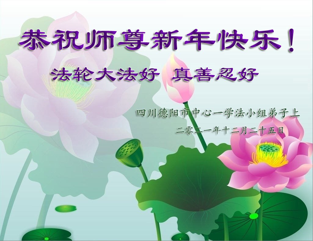 四川省德阳市中心一学法小组大法弟子恭祝师尊新年快乐!