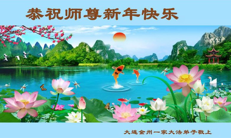 辽宁大连一大法弟子代全家子孙恭祝师尊新年快乐!