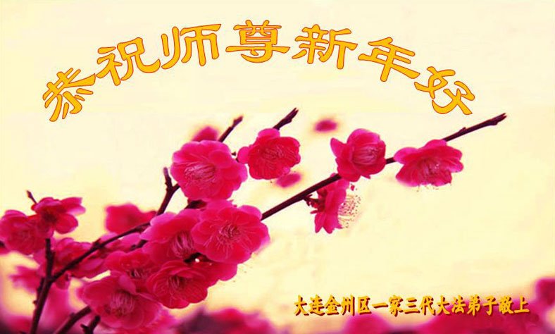 辽宁省大连金州一家三名大法弟子及家人恭祝师尊新年快乐!