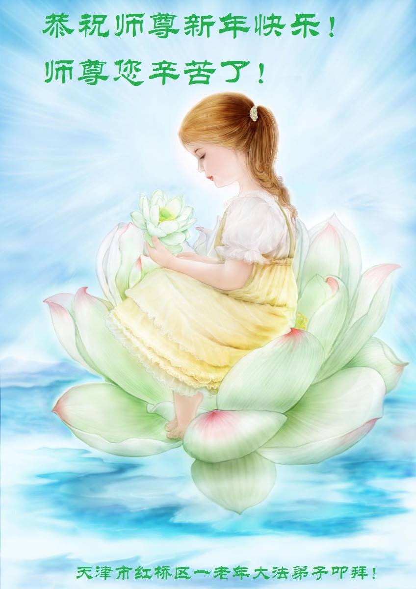 新的一年又开始了,弟子知道师父就在身边,心中非常想念师父。 盼望师父回归故土,也盼望同修欢聚一堂,叩拜恩师。师父您辛苦了! 天津滨海新区一老年大法弟子及家人恭祝师父新年快乐!
