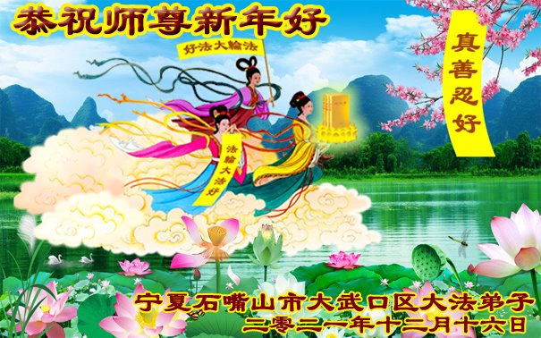 感恩师尊捞起洗净, 感恩大法净化身心; 比学比修多救众生, 真修实修直奔天庭。 宁夏石嘴山市惠农区大法弟子恭祝师尊新年好!