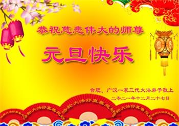 【明慧网二零二一年十二月三十一日】 安徽省砀山县和辽宁省本溪市大法弟子及家人恭祝慈悲伟大的师尊新年快乐!