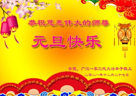 安徽省合肥广汉一家三代大法弟子恭祝慈悲伟大的师尊元旦快乐!