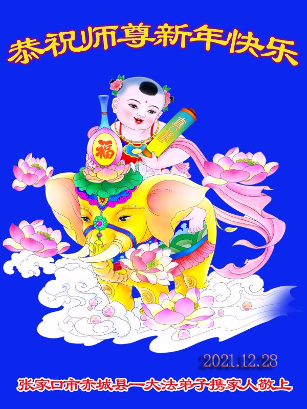 【明慧网二零二一年十二月三十一日】 河北省张家口市赤城县一大法弟子携家人恭祝师尊新年快乐!