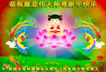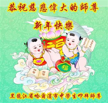 感恩师尊赋予我们大法弟子的伟大荣光,保护我们又走过了一年的千难万苦。值此新年来临之际,遥祝大洋彼岸的师尊新年好!愿“法轮大法好、真善忍好”的佛光普照寰宇,带给众生光明和希望! 北京市教育系统大法弟子叩拜! 黑龙江省哈尔滨市五常市一明真相小学生恭祝师尊新年快乐!