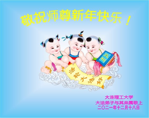 中国大陆西南大学大法弟子恭祝慈悲伟大的师尊新年好!感谢师尊的慈悲救度和保护! 辽宁省大连理工大学大法弟子与其亲属敬祝师尊新年快乐!