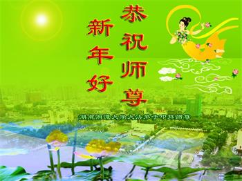 师父新年好!弟子一定听师父的话,踏踏实实、认认真真、处处事事、一思一念都符合真、善、忍,修好自己,助师父救更多人,圆满功成! 湖南省湘潭大学大法弟子恭祝慈悲伟大的师尊新年快乐!